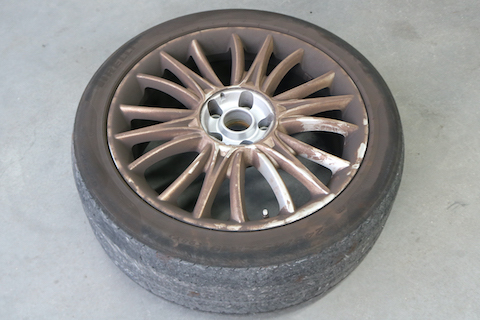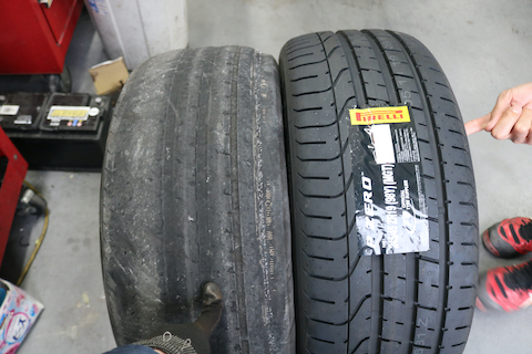 タイヤを外してみると、溝が全くなくて、タイヤのワイヤーが出ている状態!