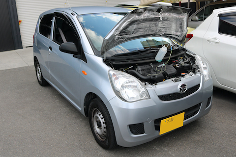 エンジンをアイドリングにした状態で、点滴の様な装置でエンジン内部に注入し、