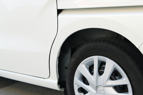 N-BOXのお客様、左後タイヤ当たりを擦ってしまったとご来店。