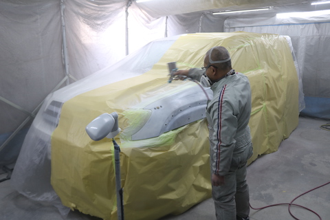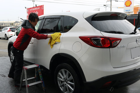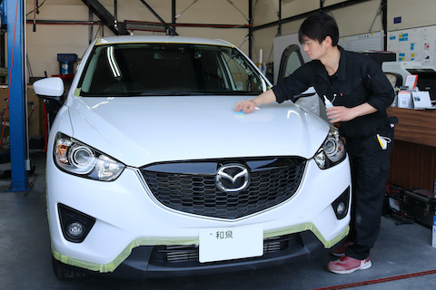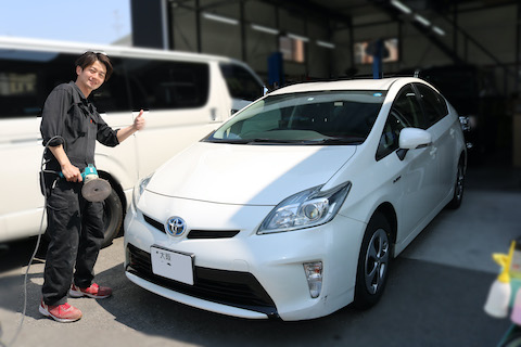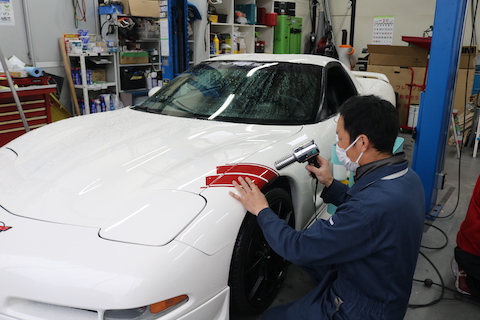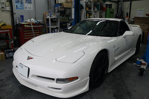 まずは、綺麗にボディを洗車し、汚れを除去していきます。