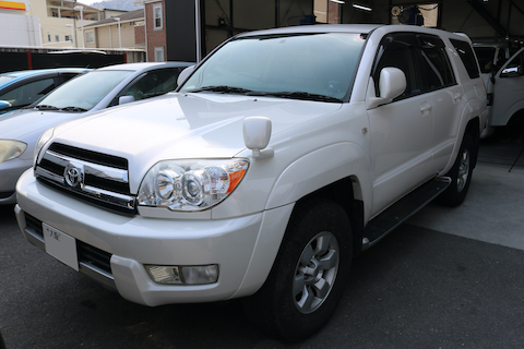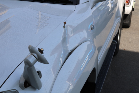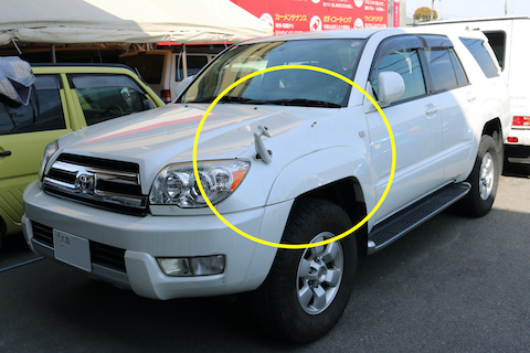 ハイラックスサーフのお客様、左のフェンダー部分が大きくへこんでしまったとご来店。