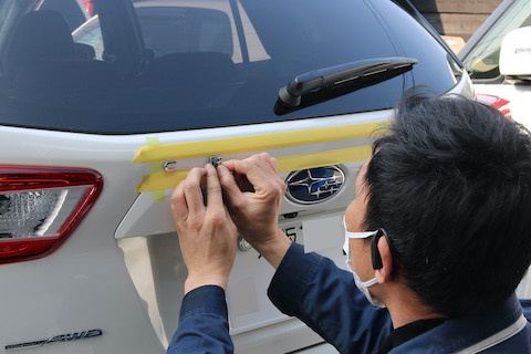 スバル XVのお客様、エンブレム取付のご依頼を頂きました。