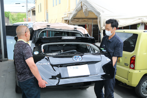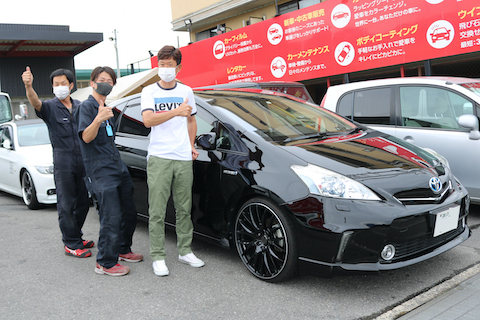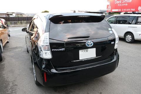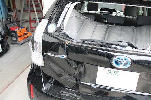 トヨタ プリウスαのお客様、リアゲートを当ててしまい、