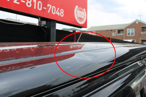 ヘコミを修正しないとリアガラスはつかない状態、