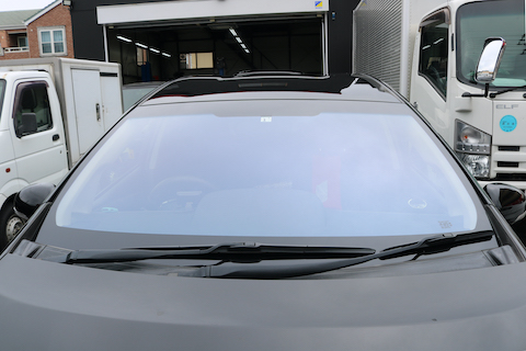 プリウスのお客様、フロントガラスにコートテクトを取り付けし、