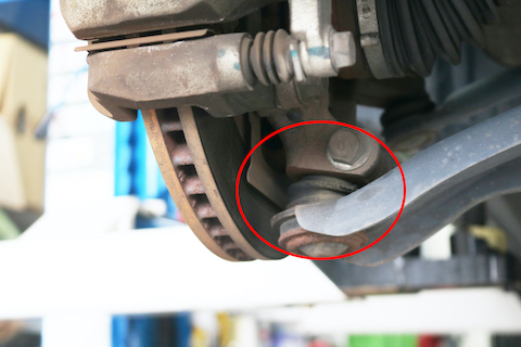 タイヤの角度を変える軸部分、ロアアームのジョイントですが、