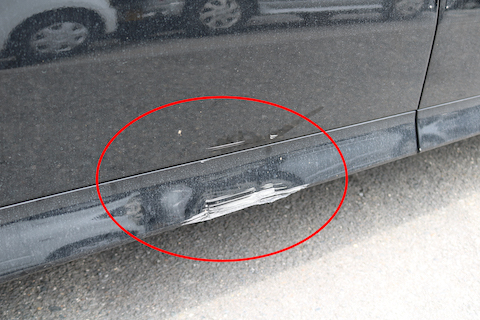 右スライドドア下側部分、ドアパネルと下樹脂モール部分に傷。