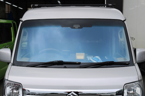 青色に輝く、カッコよくドレスアップできるフロントガラスですね。