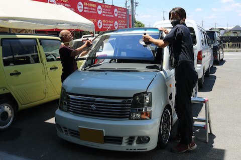 自動でブレーキがかかる安全装置がついた特殊なフロントガラスにも対応しております。