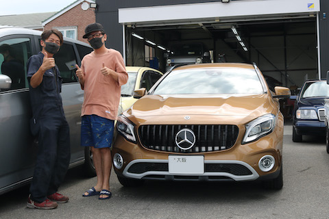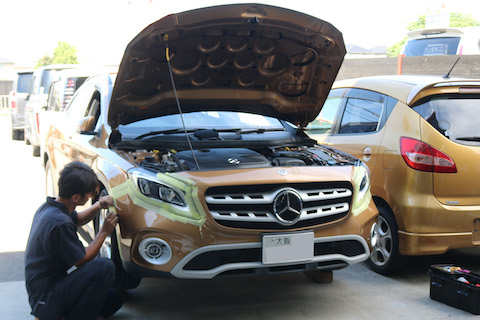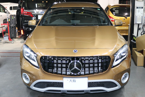 ベンツ GLAのお客様、シルバーのグリルを黒いデザインにしたいというご相談。