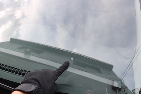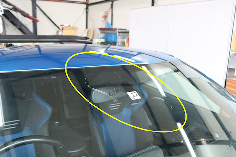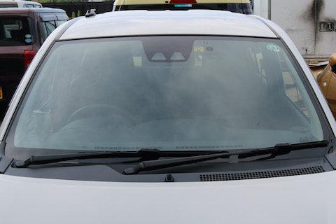 バックミラーあたりに飛び石被害で大きくヒビ割れ!