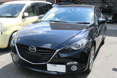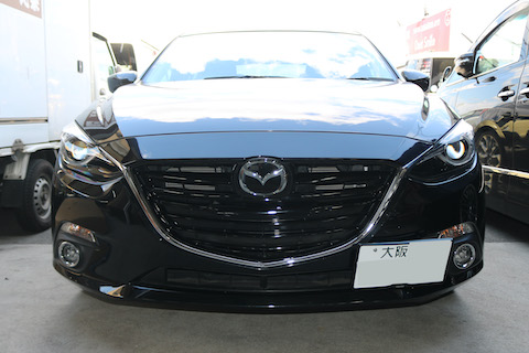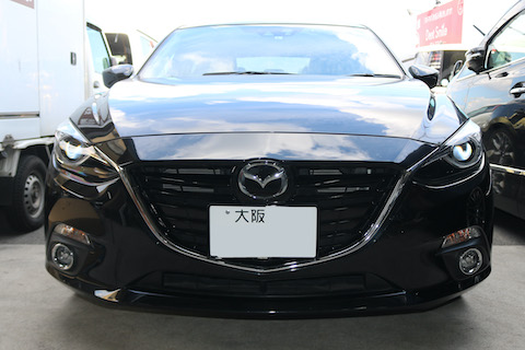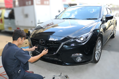 アクセラのお客様、ナンバーの位置を変えたいとご来店。