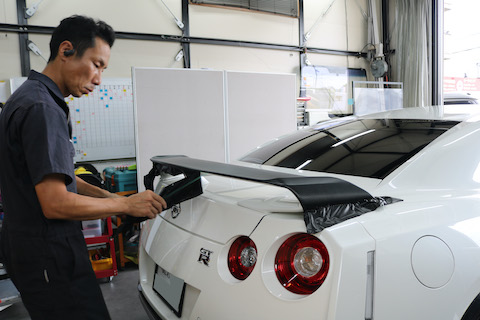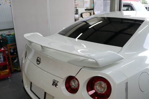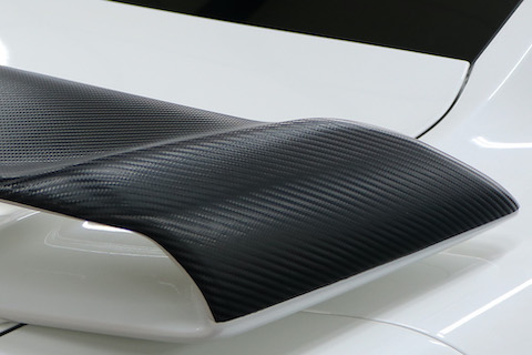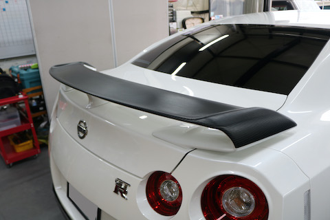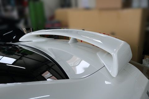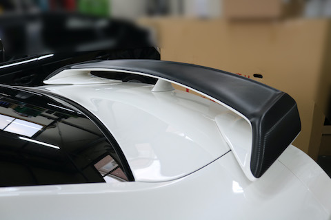 トランク上についていたスポイラーは、カーボンブラックシートで、