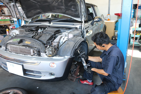 ハンドル切ったら『ギギギッ』と音がするとミニのお客様が緊急入庫。