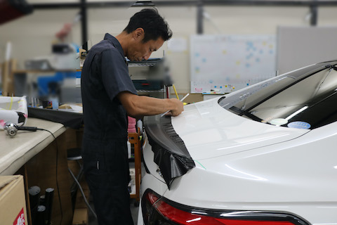 トヨタ カムリのお客様、リアガラスのカーフィルム施工のご依頼を頂き、