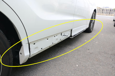 まず、フロントドア下側にこすり傷、