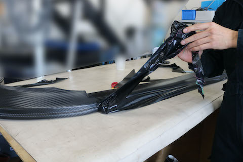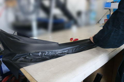 フロントスポイラーにカーボンブラックのラッピングのご依頼をいただきました!