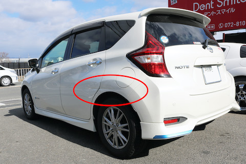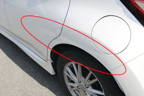 左後ろドアから、リアクォーターパネルにかけて、