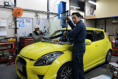 スイフトのお客様、フロントガラスが割れてしまったので、