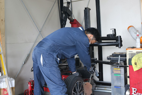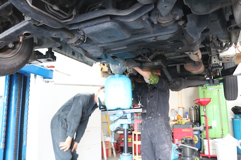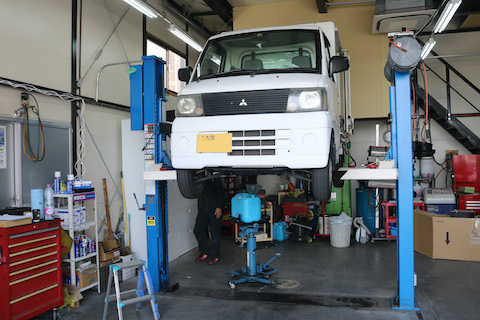 まず、車をリフトで上げて、