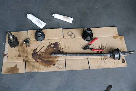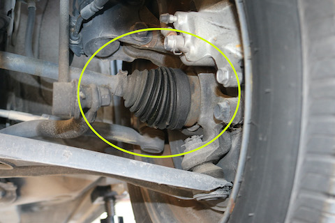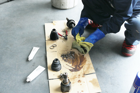 今回は、左側のドライブシャフトブーツからグリスが漏れているのを発見。