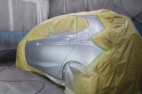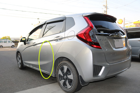フィットのお客様、左後ろドア部分をこすってしまったとご来店。