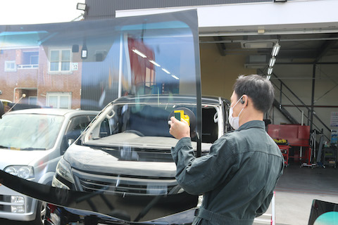 フロントガラスを交換して色変えします。