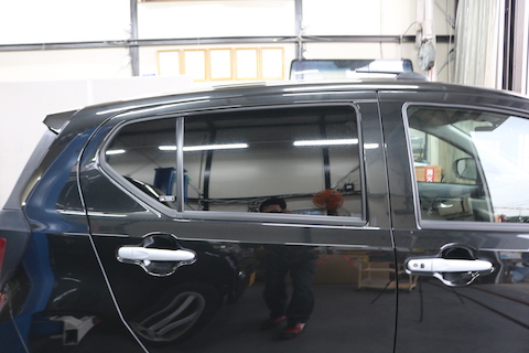 ヴェルファイアのお客様、フロントガラス青色でドレスアップしたいとご依頼。