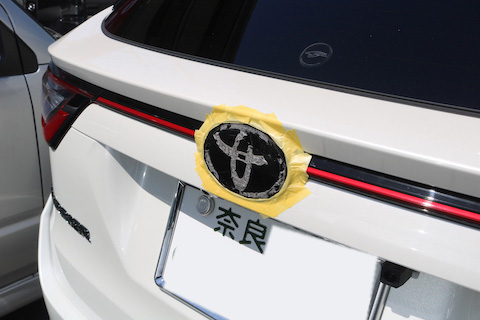 エンブレム交換は、強力な両面テープで取り付けています。