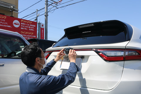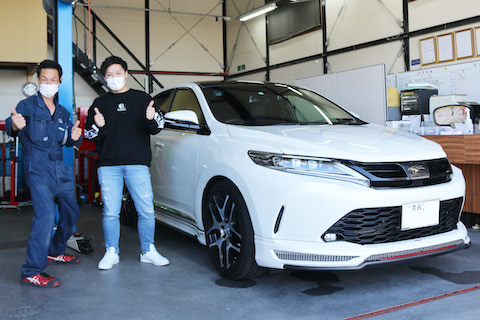奈良県よりハリアーのお客様、エンブレム交換でご来店。