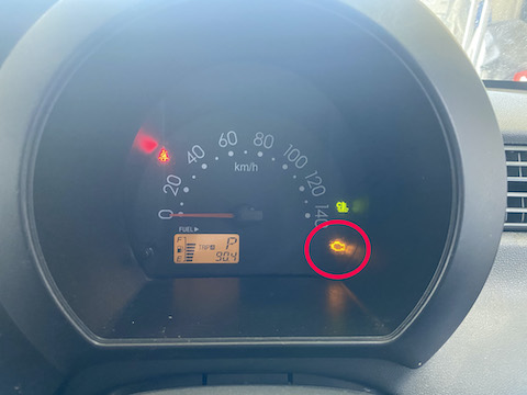 車のメーター部分にエンジンチェックランプというオレンジ色のマークが点灯したら、