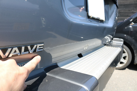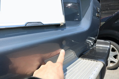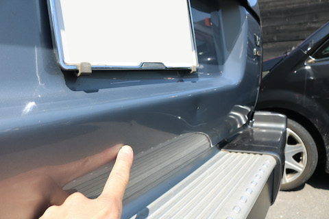 リアゲートに何時の間にかヘコミができているとご来店。