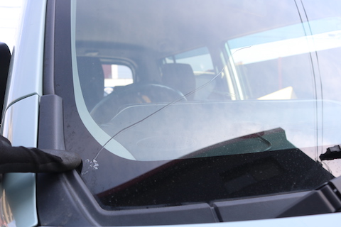 フロントガラス端っこの弱い部分に飛び石被害で、ヒビが伸びてしまったそうです。