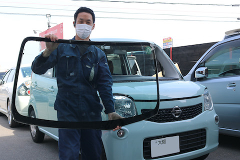 日産モコのお客様、フロントガラス交換させていただきました。