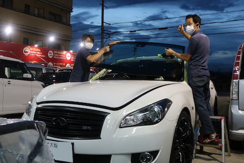 今までなら、フロントガラスに色をつけるというのが、車検に適合しなかったのですが、