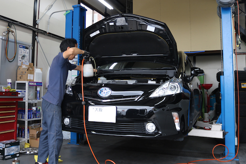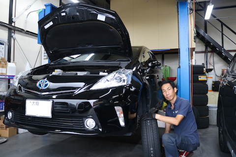 プリウスαの定期点検・車検整備、タイヤやブレーキフルード交換