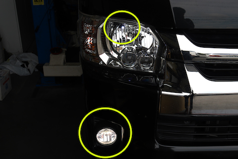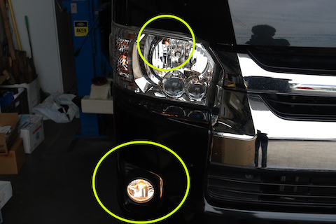 ハイエースのライト、電球を変えて黄色から白色にカスタム
