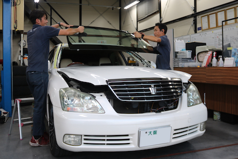 クラウンのフロントガラス交換も1/3の価格の社外品で対応!