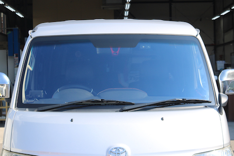 ハイエースをドレスアップするなら、フロントガラスを青色にするのはオススメ!