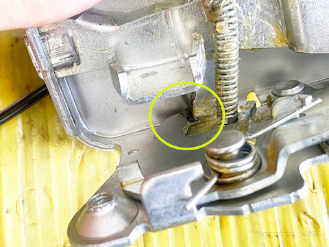 ドアを閉めた時に、レバーが毎回当たっている部分が変形し、