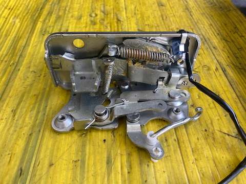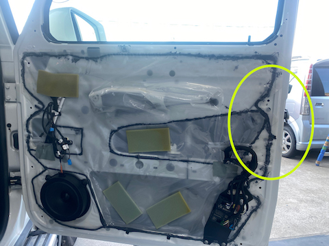 ドア内張を外し、黄色のまる部分にあるドアロックを外していきます。
