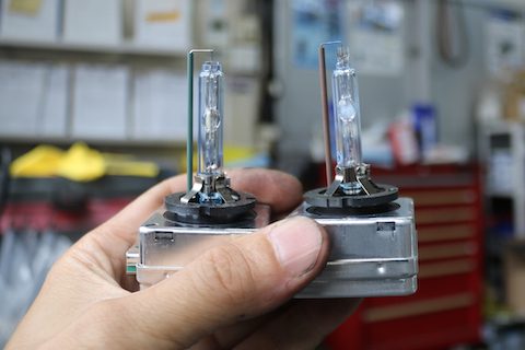 HID球を見比べてみると、右側の悪い方が球が曇っています。
