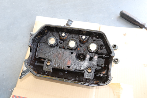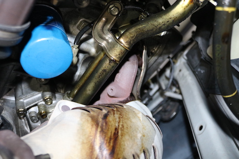 漏れ部分を確認すると、エンジンカバーからのオイル漏れ。