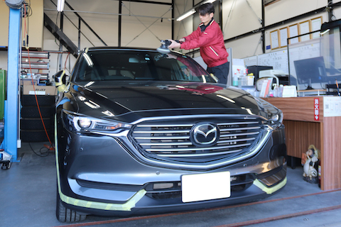 続いて、今回も当店オススメのガラスコーティングを施工。