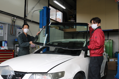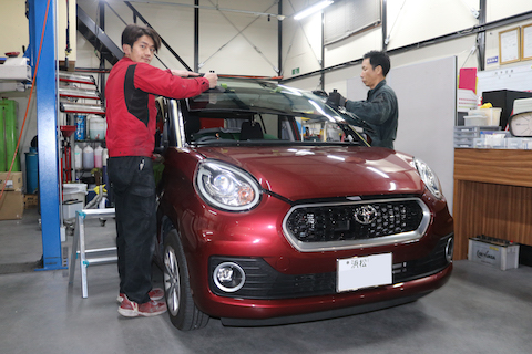 トヨタ パッソのお客様フロントガラス交換でご来店。