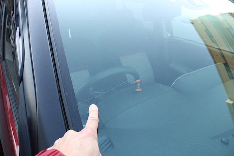 運転席右側あたりに飛び石被害で、ヒビが伸びてしまい、