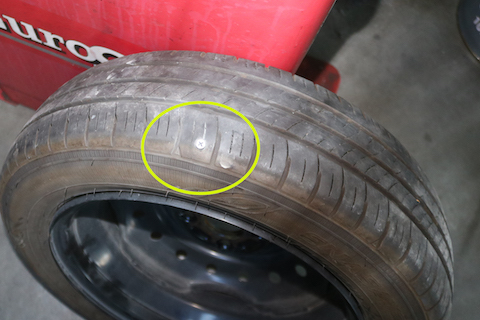 こちらのタイヤもネジが刺さってパンクしていますが、