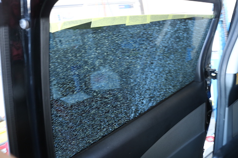 フロントガラス以外のガラスは強化ガラスで、粉々になるのですが、