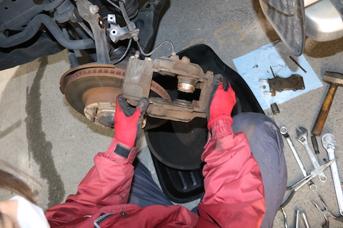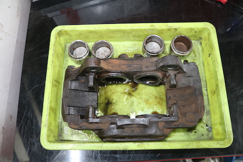 ブレーキキャリパー部分を取り外して、オーバーホール。