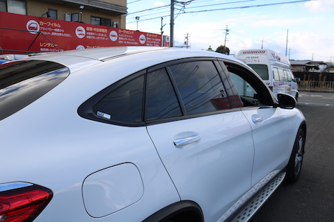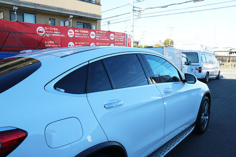 ベンツ GLCのお客様、ドアメッキモール部分のカーラッピングご依頼を頂きました。